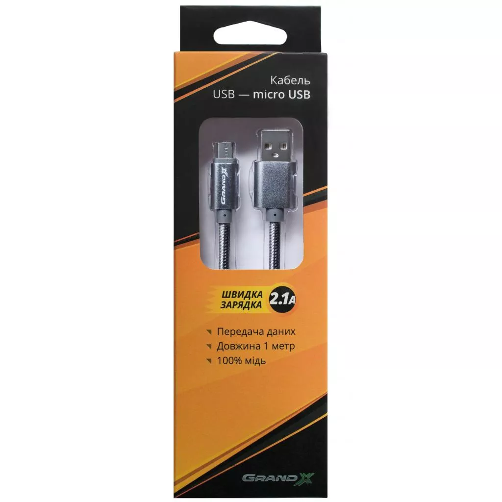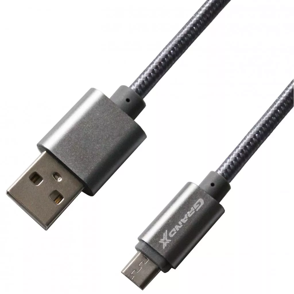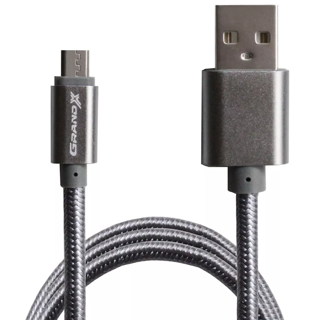 Дата кабель Grand-X USB - micro USB, Cu, 2.1A, Grey/Grey, 1m (FM01GGR)