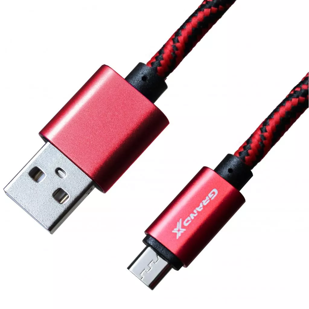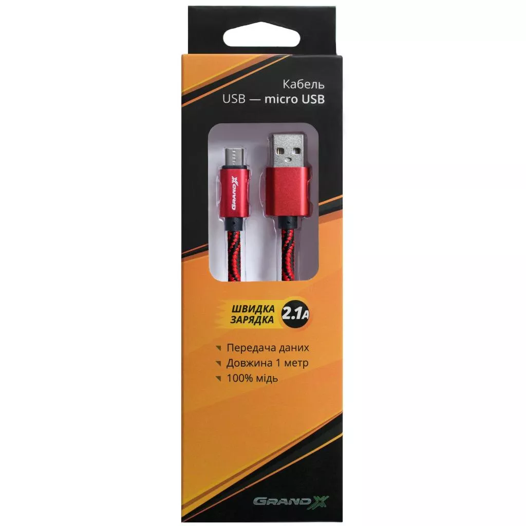 Дата кабель Grand-X USB - micro USB, Cu, 1.5A, Red/Blac, 1m (FM05RB)
