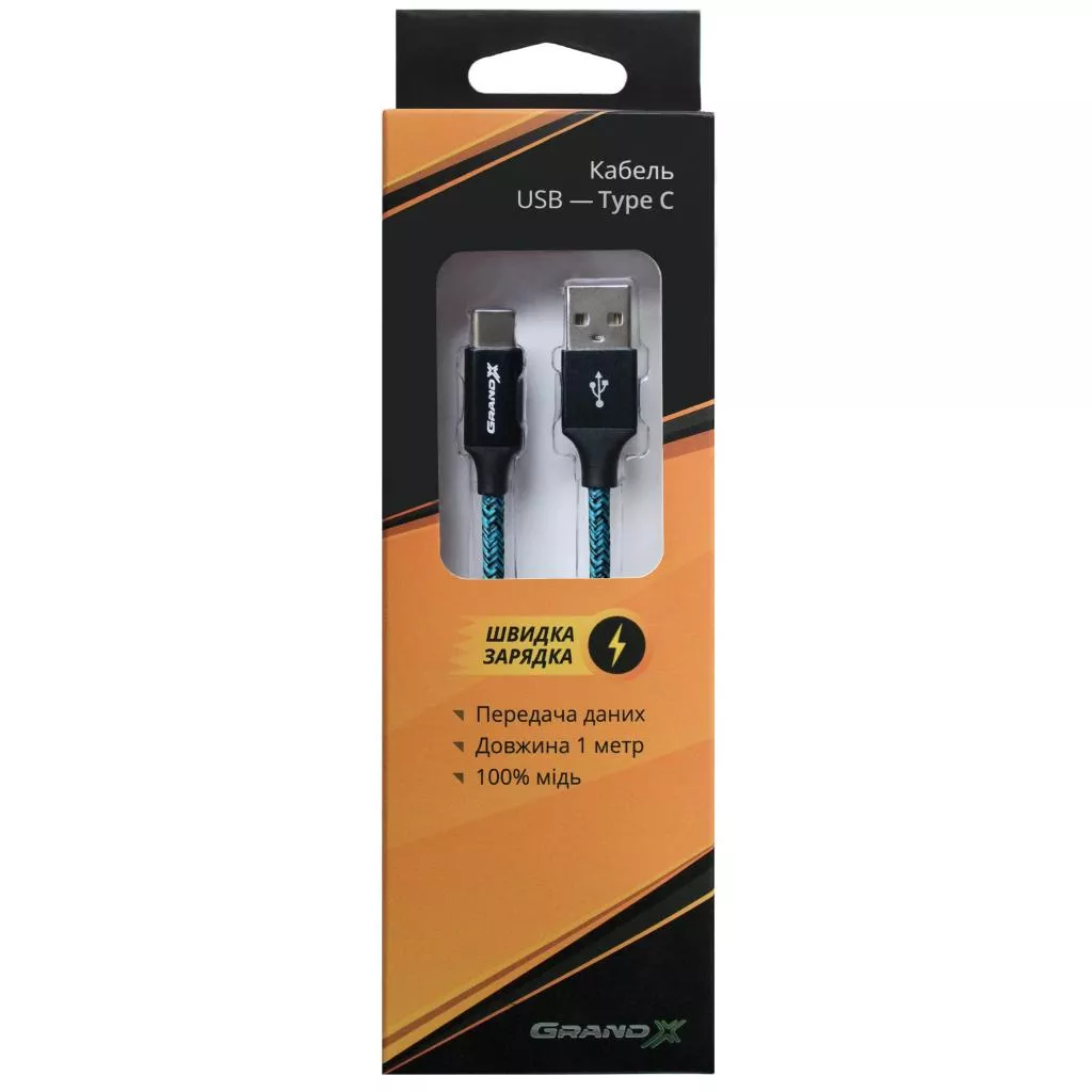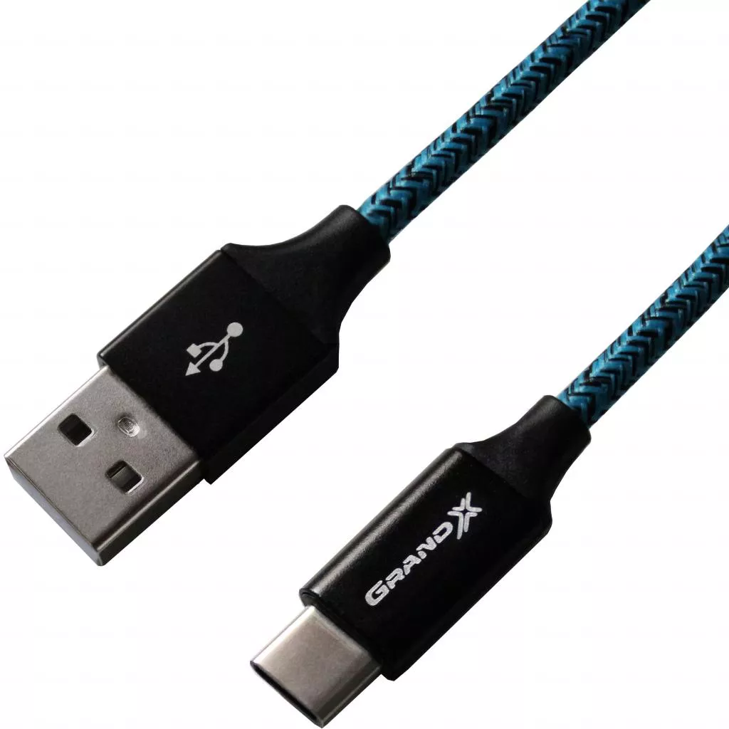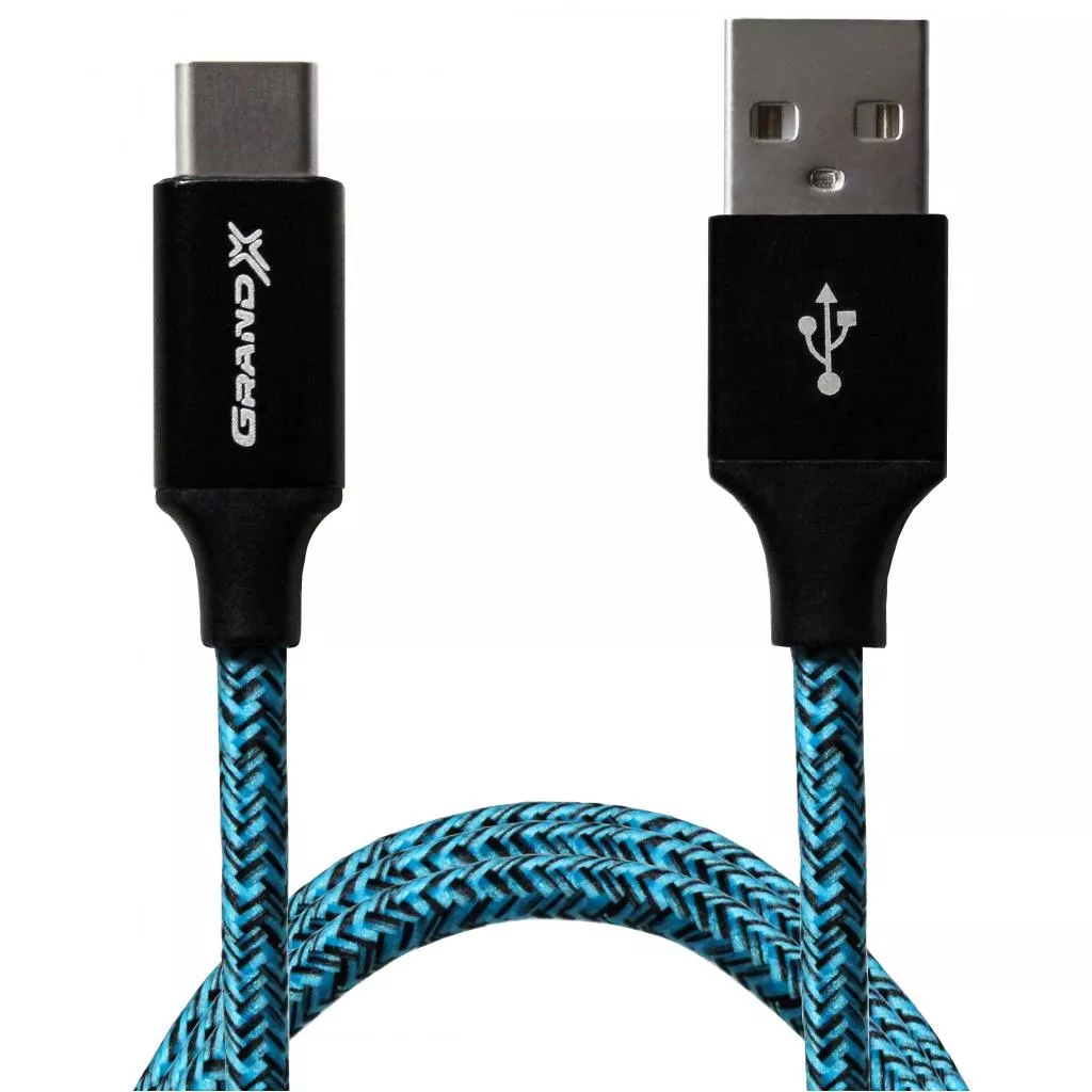 Дата кабель Grand-X USB - Type C, Cu, 2.4A, Blue/Black, 1m (FC06BLB)
