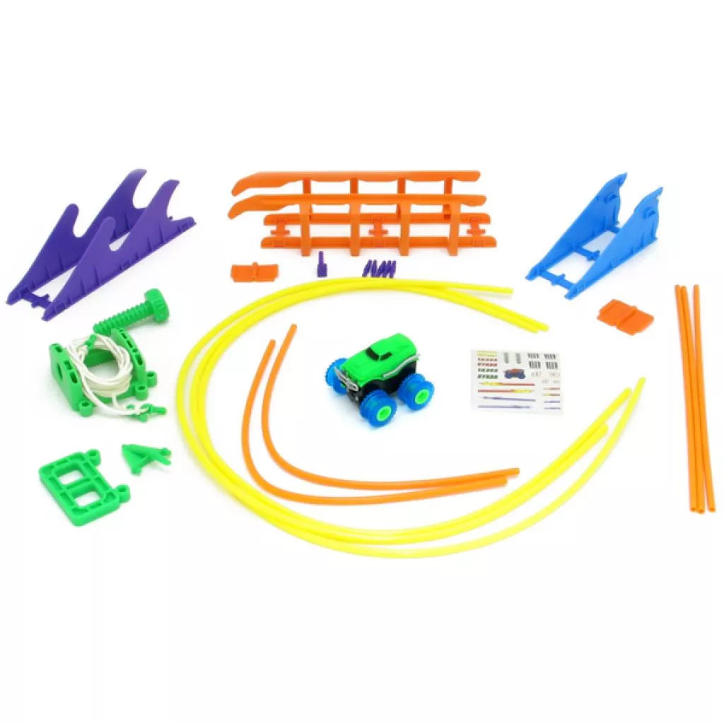 Машинка изготовлена из крепкого пластикового корпуса, не боящегося падений, и резиновых колёс со специальной ребристой формой и ложбинкой. Благодаря этим колёсам Trix Trux может похвастаться проходимостью настоящего вездехода, при чём как на земле, так и в воздухе. В этом можно легко убедиться, запустив машинку по канатной дороге, которая есть в комплекте. Кроме канатной дороги, трассу также можно усложнить трамплином, лестницей, "волной" и другими элементами для акробатических трюков. Испытательным полигоном может стать практически любая поверхность в доме.