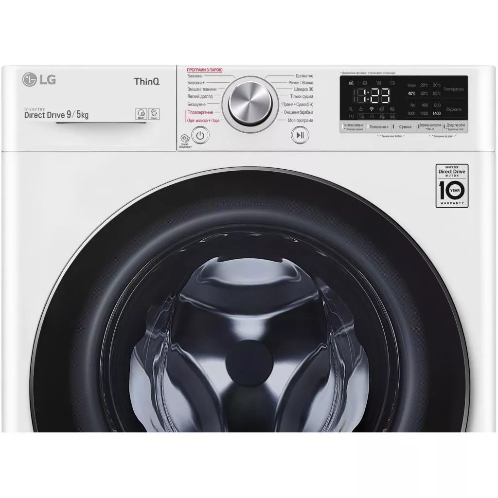 В стиральной машине LG F4V9VG9W обработка паром уничтожает до 99,9% бытовых аллергенов.