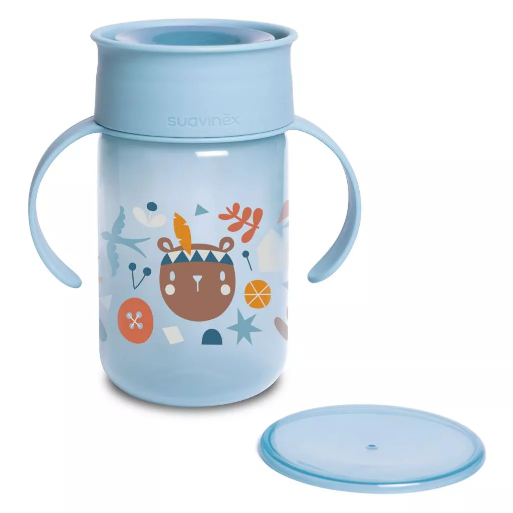 Важный шаг в развитии детей - научиться пить без вашей помощи. Чашка 360 ° серии (модельного ряда) Лесные истории от бренда Suavinex подходит для обучения самостоятельному питью малышей и отлично подходит для перехода на классическую кружку. С помощью этой обучающей чашки ваш ребенок улучшит свои способности, потому что чашка дает возможность вам пить, не проливая жидкость из Ппрактически любой части верхнего края благодаря клапану. Непроницаемая крышка предотвращает проливание жидкости при переворачивании чашки и протекает только при контакте с губами ребенка. У кружки есть ручки, подходящие для маленьких детских рук, которые дают возможность легко брать ее.