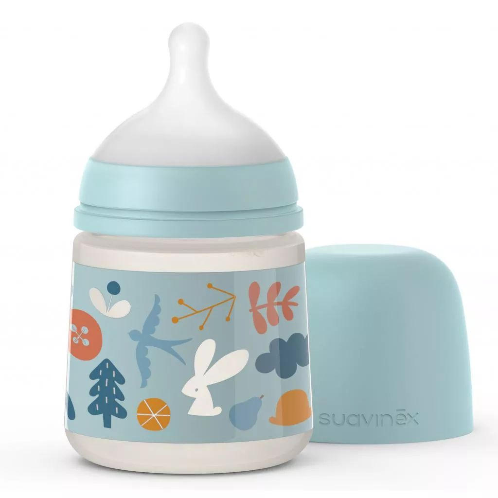 Бутылочка Suavinex 150 мл с новой коллекции "Лесные истории", укомплектован новой, инновационной соской с медленным потоком. Оригинальный шаг к более естественному кормлению из бутылочки, с учитыванием развития полости рта ребенка: