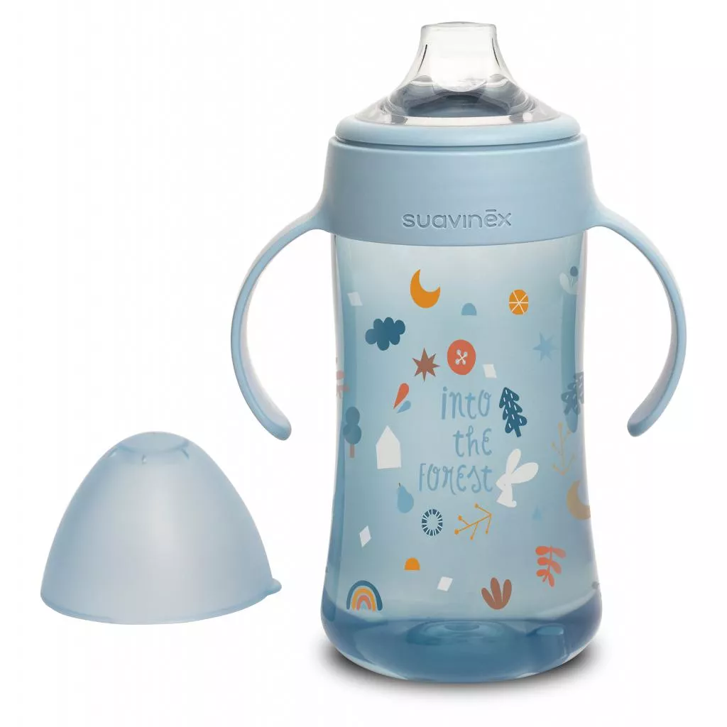 Поильник-непроливайка Suavinex Лесные истории 270 мл. +4 мес с веселыми героями поможет постепенно перейти от бутылочки к чашке. Мягкий носик дает возможность малышу пить без усилий.