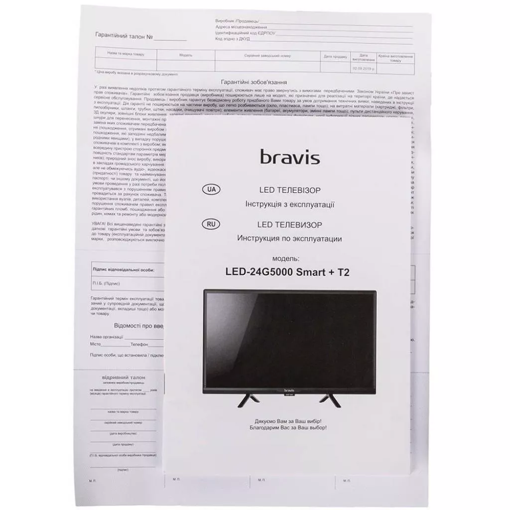 Телевизор BRAVIS LED-24G5000 станет идеальным завершением вашей уютной кухни или небольшой спальни. На ровную поверхность стола или тумбы модель надежно устанавливается при помощи двух V-образных ножек. Габаритные размеры без подставки составляют 553 x 333 x 86 мм. При желании телевизор можно закрепить на стене, воспользовавшись кронштейном стандарта VESA 200 x 100.