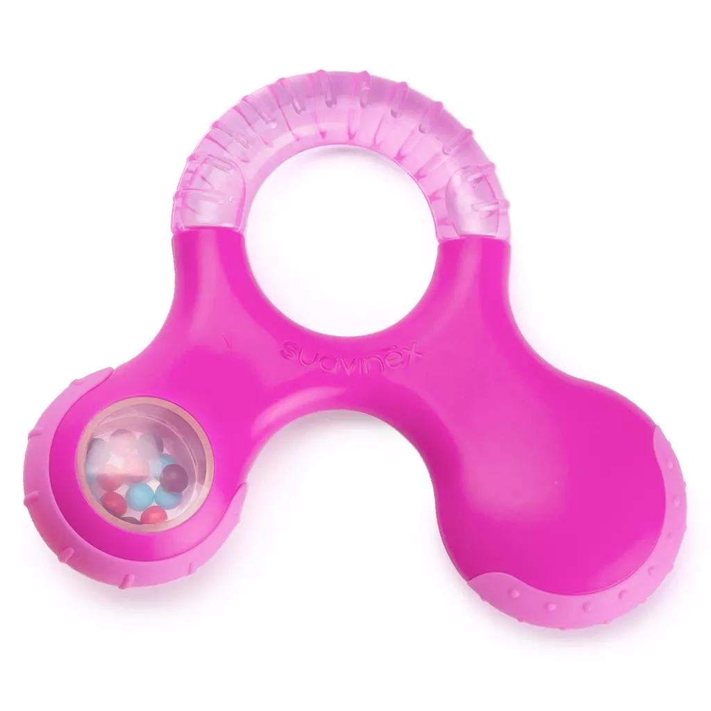 Прорезыватель Suavinex (Суавинекс) с погремушкой поможет малышу справиться с болезненными ощущениями и зудом десен во время прорезывания зубов на каждом из этапов.