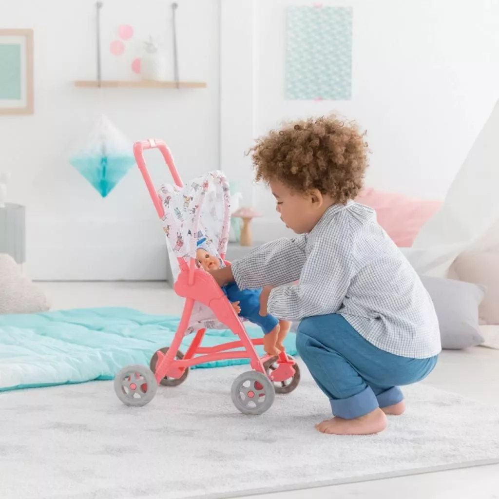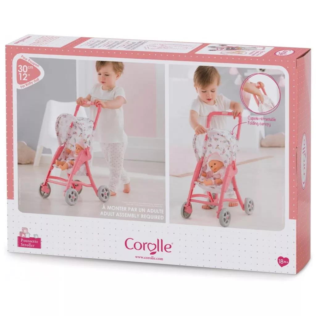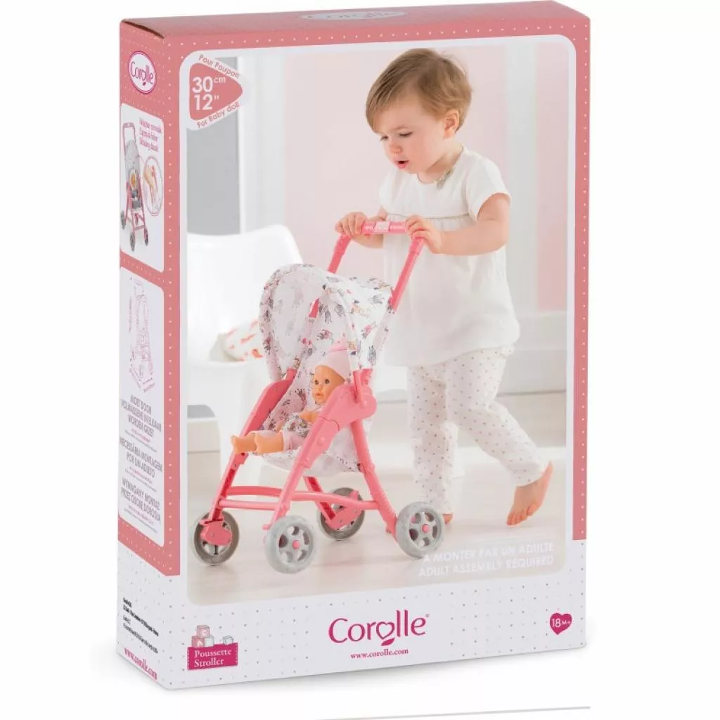 Почти каждый малыш мечтает о новом современном транспорте для своей любимой игрушки. Представляем вам удобную и легкую коляску для прогулок от Corolle. Легкий каркас изготовлен из высококачественного прочного пластика в розовом цвете. Удобная рифленая ручка обеспечит комфортное управление. Сиденье коляски из прочной ткани, дополнительно оборудовано регулируемым ремнем безопасности для надежной фиксации куклы. А раскладной козырек защитит куклу от дождя, или солнца. Рекомендуемая высота куклы или пупса 30 см. Ребенок будет в восторге от прогулки с коляской от Corolle.