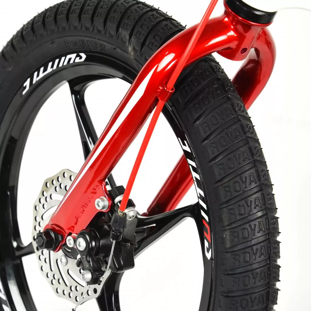 На байк установлена ригидная вилка. Она легкая и прочная, обеспечивает повышенную жесткость передней части велосипеда, а следовательно и высокий контроль в управлении. Основным преимуществом подобной вилки выступает ускоренное повышение уровня езды неумелым маленьким велосипедистом. Амортизационная вилка покроет большинство ошибок при езде, но жесткая - нет. использование (эксплуатации) жесткой вилки обезопасит Вашего ребенка в будущем от ошибок, а пока Ваш ребенок обучается, за его безопасность будут отвечать боковые колеса, которые идут в комплекте.