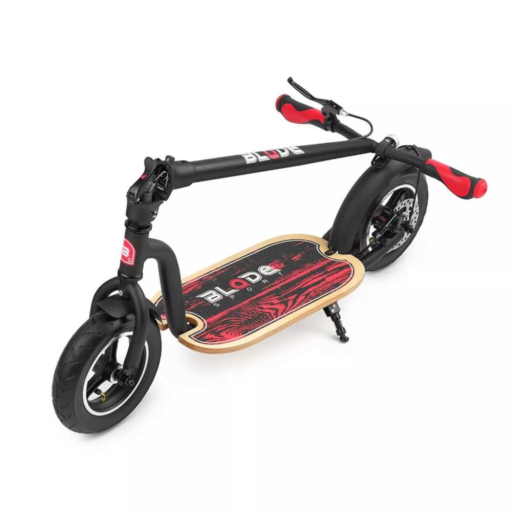 Большой самокат Blade Sport Swan 231181 с деревянной декой впечатляющих размеров. Широкие надувные покрышки пригодны для эксплуатации на всех типах поверхностей. Плюс не стоит забывать о складном механизме, встроенном в рулевую стойку, за счёт чего столь крупный самокат будет легко транспортировать.