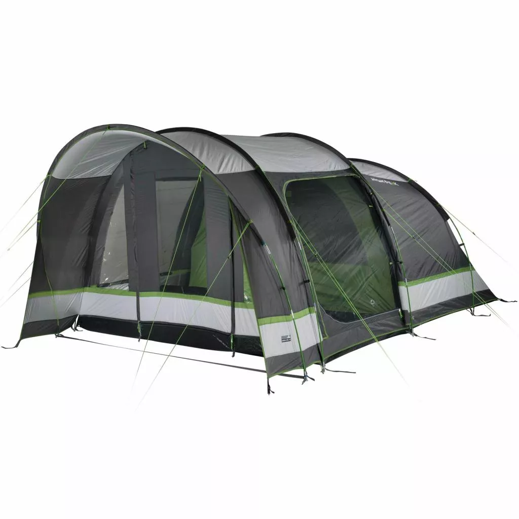 High Peak Brixen 5.0 - семейная туннельная палатка с двумя входами, гостиной со вшитым полом, который обеспечивает защиту от назойливых насекомых и нежелательных сквозняков. Интегрированный навес создает тень и помогает предотвратить попадание дождя внутрь при открывании двери. Жилая зона с высотой потолка 2 м имеет достаточно места для размещения кемпинговых стульев, стола и походного снаряжения. Сетчатое окно со шторой на фронтальных дверях обеспечивает постоянный приток свежего воздуха в палатку. Боковая сетчатая дверь увеличивает приток свежего воздуха и защищает от насекомых. Прозрачные окна в жилой зоне наполнят помещение светом, а шторы при необходимости обеспечат уединение. Крыша имеет теплоотражающее алюминизированное покрытие, снижающее повышение температуры внутри палатки днем в солнечную погоду.