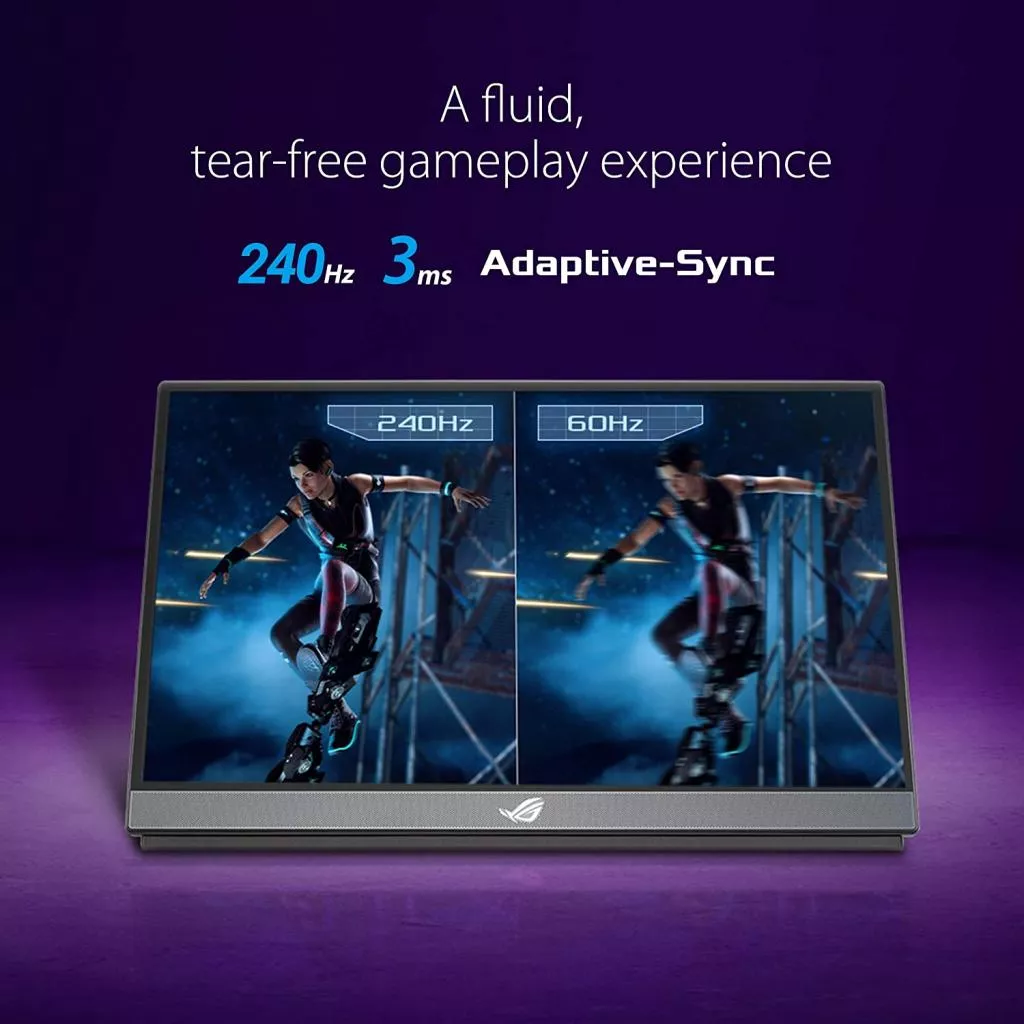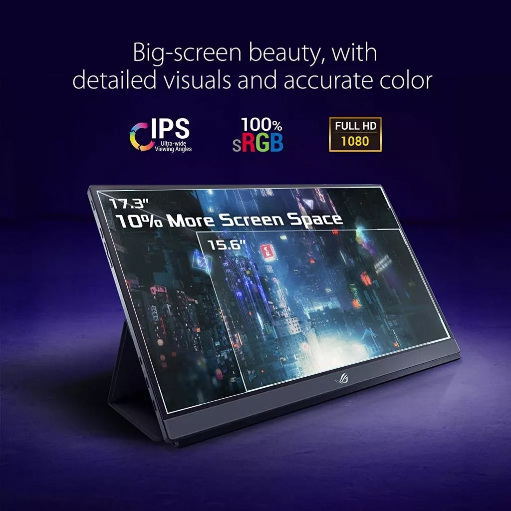 ROG Strix XG17AHP с тонким профилем в 1 см и весом всего 1060 г великолепно портативен, его легко установить и использовать где угодно.