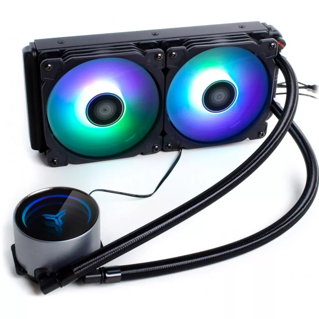 280мм радиатор системы обеспечивает высокую площадь рассеивания. Два 120-мм кулера оснащен и укомплектованы RGB-светодиодами, позволяющие реализовывать многоцветные световые эффекты. Данные вентиляторы с гидравлическим подшипником и продуманной формой лопастей обеспечивают идеальный баланс между уровнем шума и эффективностью охлаждения.