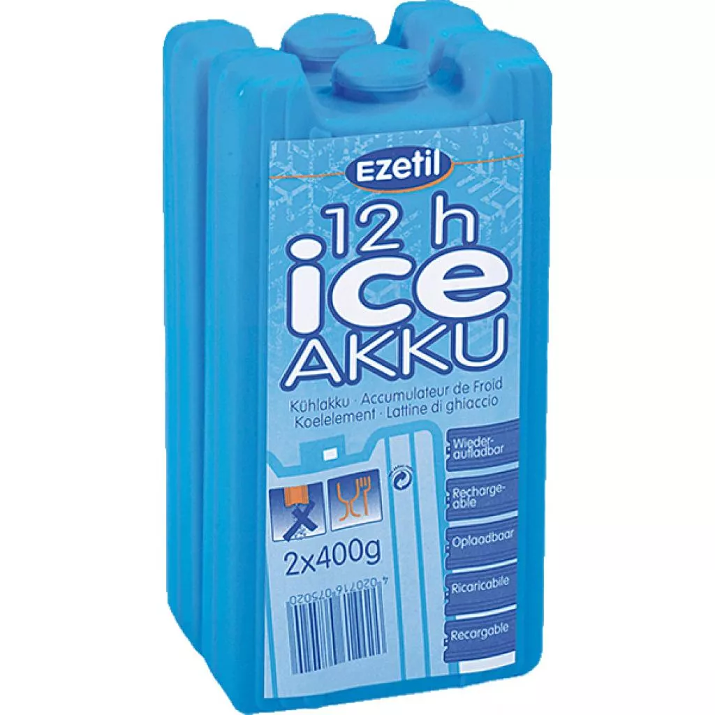 Брикеты EZETIL Ice Akku выпускаются в комплектах по 2 шт. и имеют различия по весу (2х200гр, 2 х300гр, 2 х400гр) для различного объема сумок-холодильников.