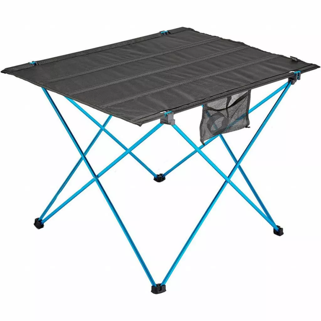Стол имеет пластиковые наконечники на ножках, которые делают его более устойчивым и оснащен и укомплектован двумя сетчатыми карманами для хранения необходимых мелочей.