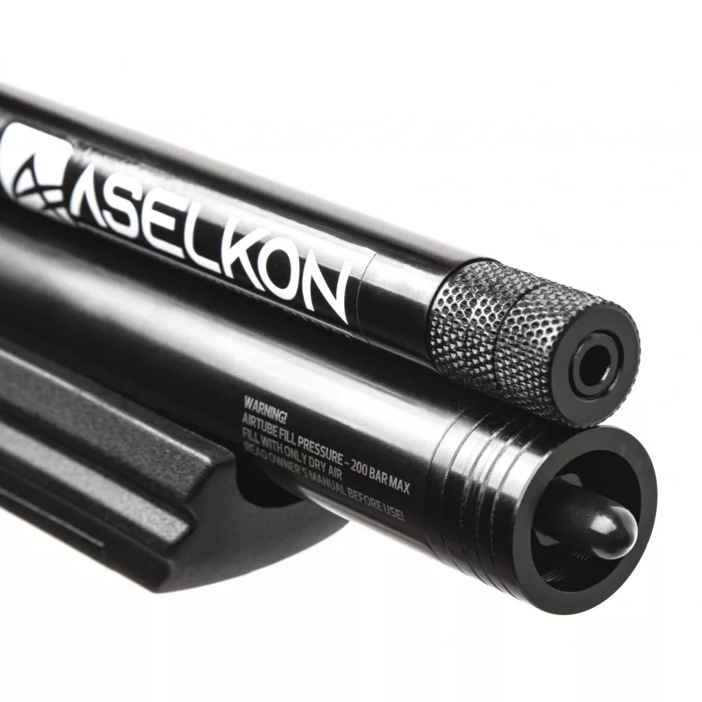Компоновка выполнена по схеме булл-пап, что позволило сократить общую длину винтовки. При этом в отличии от предыдущей модели (Aselkon MX7) был так же укорочен ствол, что сделало винтовку ещё более компактной и манёвренной. Теперь стрелять из положения стоя и с колена стало ещё более комфортно. Общая длинна этой винтовки, составляет всего 650 мм., а ствола 450 мм. Винтовка хорошо сбалансирована и весит всего 3820 г. Встроенный баллон объемом 275 куб. см. на 20% больше чем у других винтовок этого класса, и обеспечивает максимально и в полном объемее давление в 200 бар. Это дает возможность сделать около 80 выстрелов с одной заправки, что является отличным показателем, позволяя всецело насладиться стрельбой, и тратить минимум времени на подготовку винтовки к стрельбе.