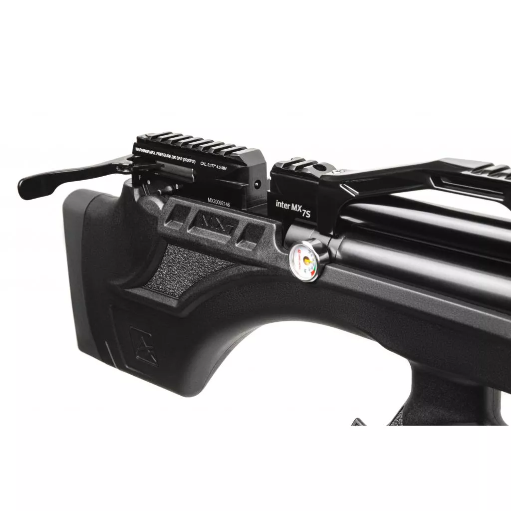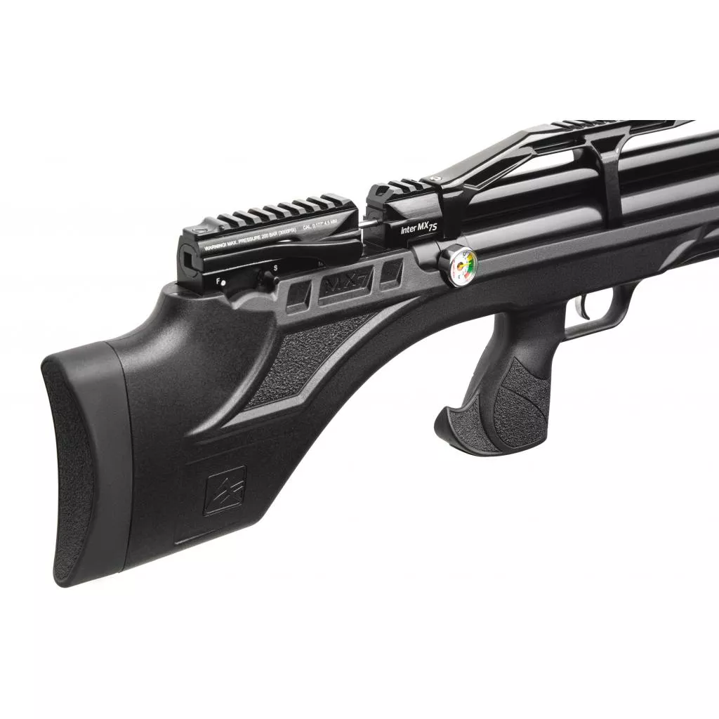 Пневматическая PCP винтовка Aselkon MX7-S Black - укороченная версия модели МХ-7. Ложе с регулируемым подщёчником, выполнено из ударопрочного пластика, имеет мягкий затыльник, не только смягчающий и без того незначительную отдачу, но и обеспечивает более удобную вкладку, благодаря чему вы сможете вести более кучную и прицельную стрельбу.