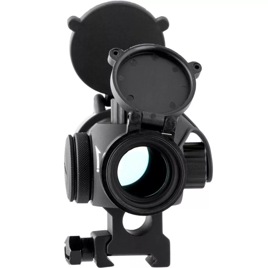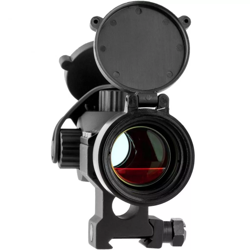 Также здесь имеются маховики для внесения поправок, прикрытые защитными колпачками на резьбе (дополнительно крепящимися к корпусу, чтоб минимизировать возможность их утери). Для защиты стекол прицел комплектуется откидными подпружиненными защитными крышками.