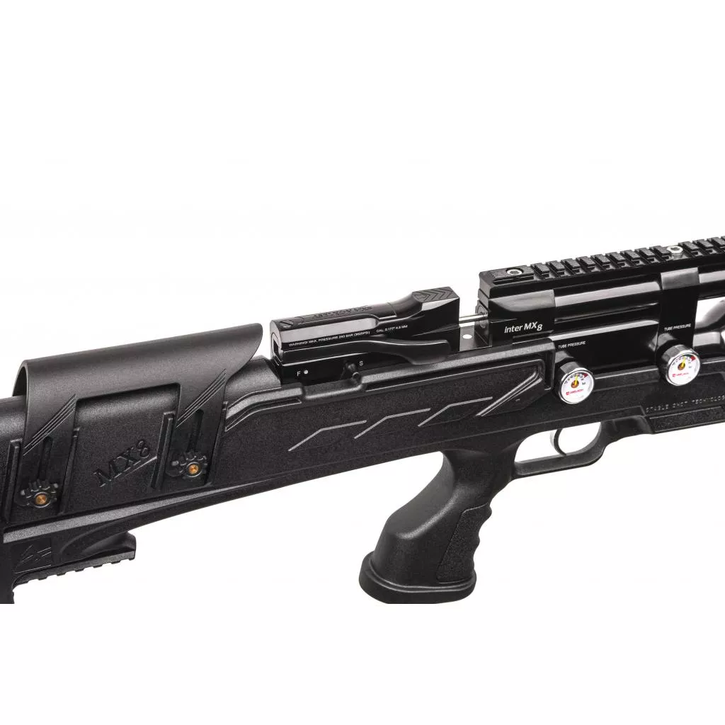 Пневматическая PCP винтовка Aselkon MX8 Evoc Black – эргономическая пистолетная рукоять имеющая анатомическую форму, обеспечивает надёжный и удобный хват. Приклад с регулируемым по высоте подщёчником, благодаря которому, вы сможете комфортно подстроиться под оптический прицел Ппрактически любой высоты. Ложе выполнено из ударопрочного пластика, имеет мягкий затыльник, не только смягчающий и без того незначительную отдачу, но и обеспечивает более удобную вкладку, благодаря чему вы сможете вести более кучную и прицельную стрельбу.