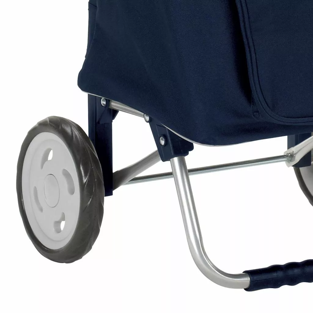 Сумка-тележка Gimi Argo классического дизайна с вместительным накладным карманом. Модель объемом 45 литров и максимально и в полном объемей нагрузкой до 30 кг, предназначена для ежедневного шоппинга. В верхней части сумки-тележки по периметру расположена стяжка и накрыта клапаном для обеспечения защиты от влаги во время осадков. В нижней части сумки расположены полностью съемные колеса, которые легко заменяются при необходимости. Колеса диаметром 15 сантиметров дают возможность отлично преодолевать неровности на рынках и ступеньки в торговых центрах. Удобная полиуретановая ударопрочная ручка имеет эргономичную форму для комфортного размещения в ладони. Сумка крепится на стальном шасси при помощи специальных проемов на тыльной части сумки и фиксируется текстильной застежкой. Сумка-тележка Gimi Argo станет надежным помощником при походах за покупками и поможет сохранить здоровье спины и суставов, на которые приходится основная нагрузка при ношении тяжестей.
