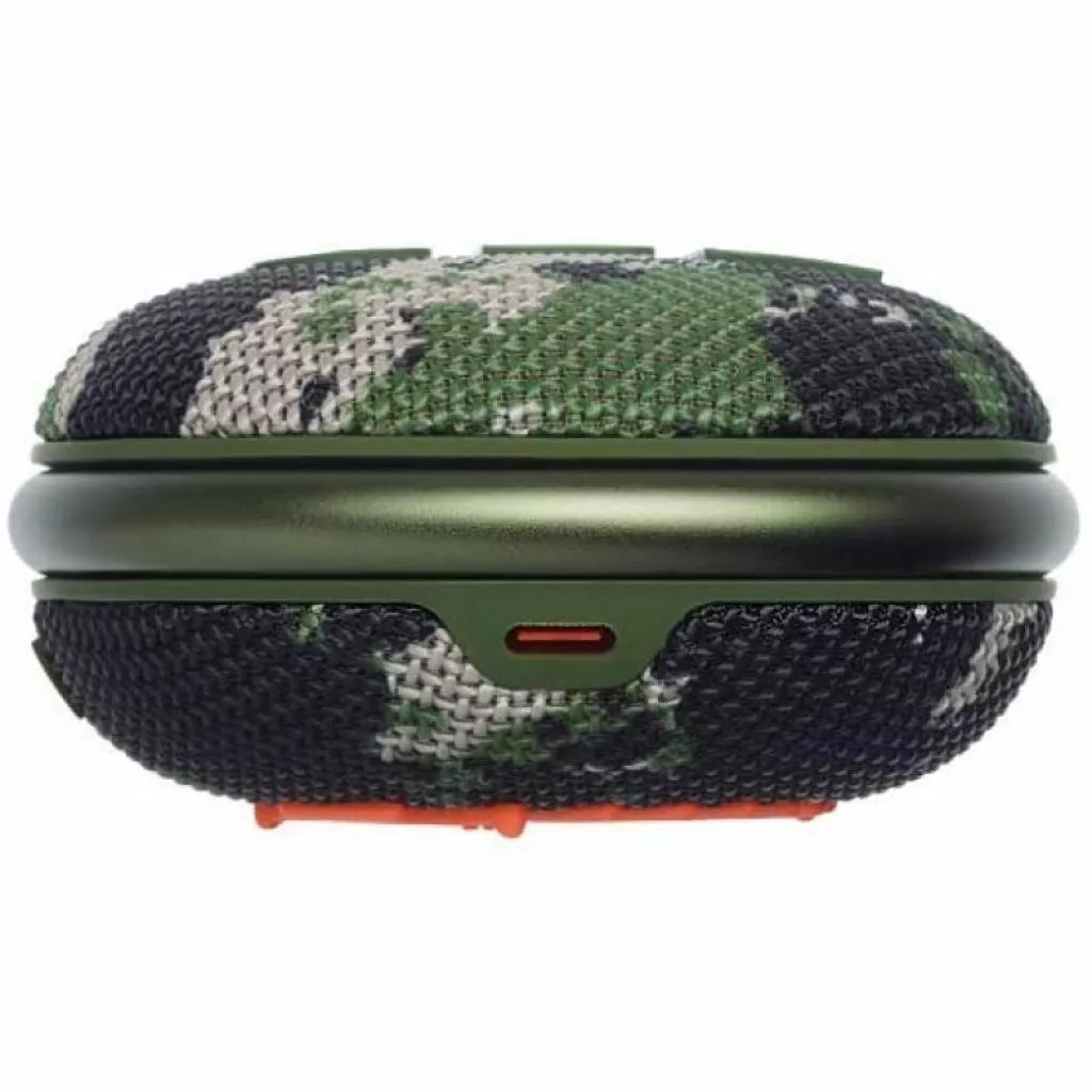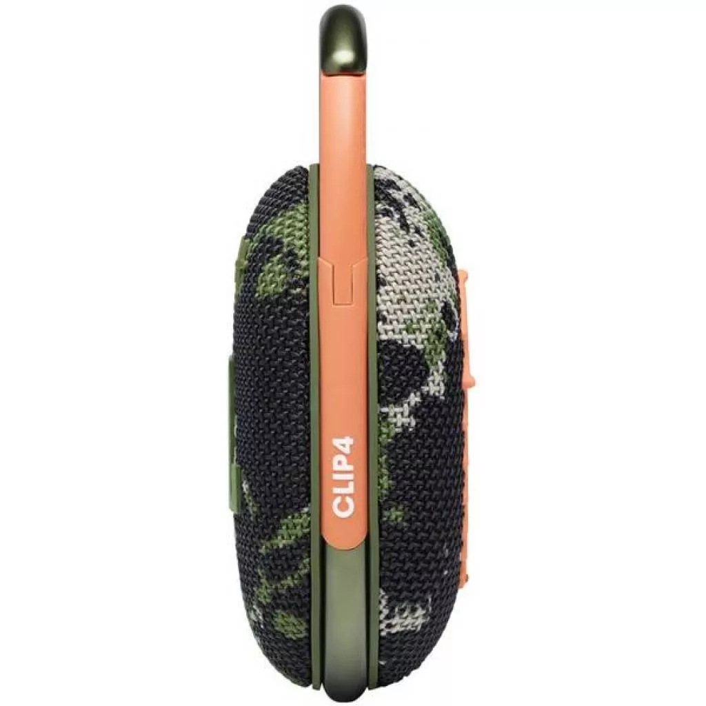 JBL Clip 4 — небольшая и компактная портативная колонка с частотным диапазоном 100 Гц — 20 кГц и мощностью 5 Вт. Колонка демонстрирует объемный звук и довольно высокое качество звучания. Акустика имеет Уровень (степень) защиты IP67. Устройство защищено от попадания пыли и имеет прочную водонепроницаемую конструкцию. Встроенный емкостной аккумулятор, обеспечивает воспроизведение любимых музыкальных композиций на протяжении восьми часов без подзарядки.