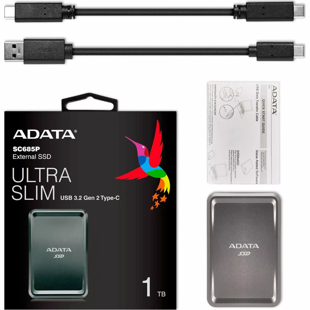 A-Data SC685P - SSD-накопитель, который отличается малыми габаритами и скоростным интерфейсом USB Type-C. Благодаря своим компактным габаритам это идеальный выбор для пользователей, которые работают в дороге, ездят в командировки или проводят много деловых встреч. Для таких специалистов этот накопитель поможет всегда держать всю необходимую информацию под рукой.