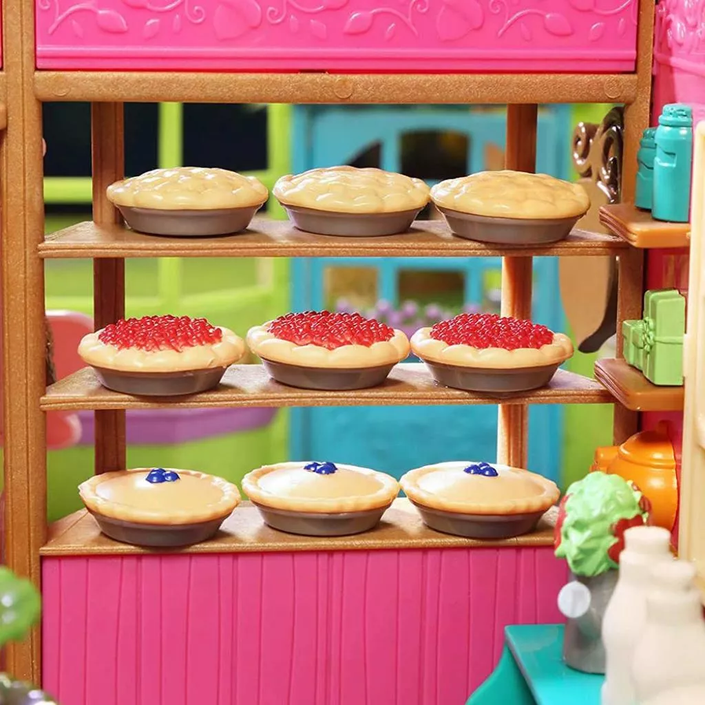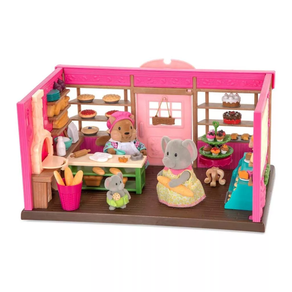 Игровой набор "Пекарня" от Li'l Woodzeez состоит из 69 предметов, представляет собой увлекательную игрушку, сделан в виде домика, в котором все приспособлено для того, чтобы печь и продавать хлеб, булочки, пирожные, тортики. В качестве пекарей к этому прекрасному игровому набору подойдут любые фигурки коллекции милых зверушек Lil Woodzeez.