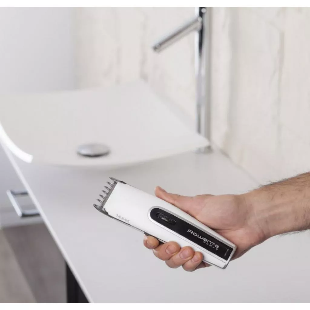 Энергопитание и управлениеПитание машинки для стрижки Rowenta может производиться от стандартной электросети напряжением 220 В либо от аккумулятора. Прибор может работать автономно на протяжении 40 минут. Управление машинкой для стрижки осуществляется посредством кнопки, расположенной на корпусе прибора.