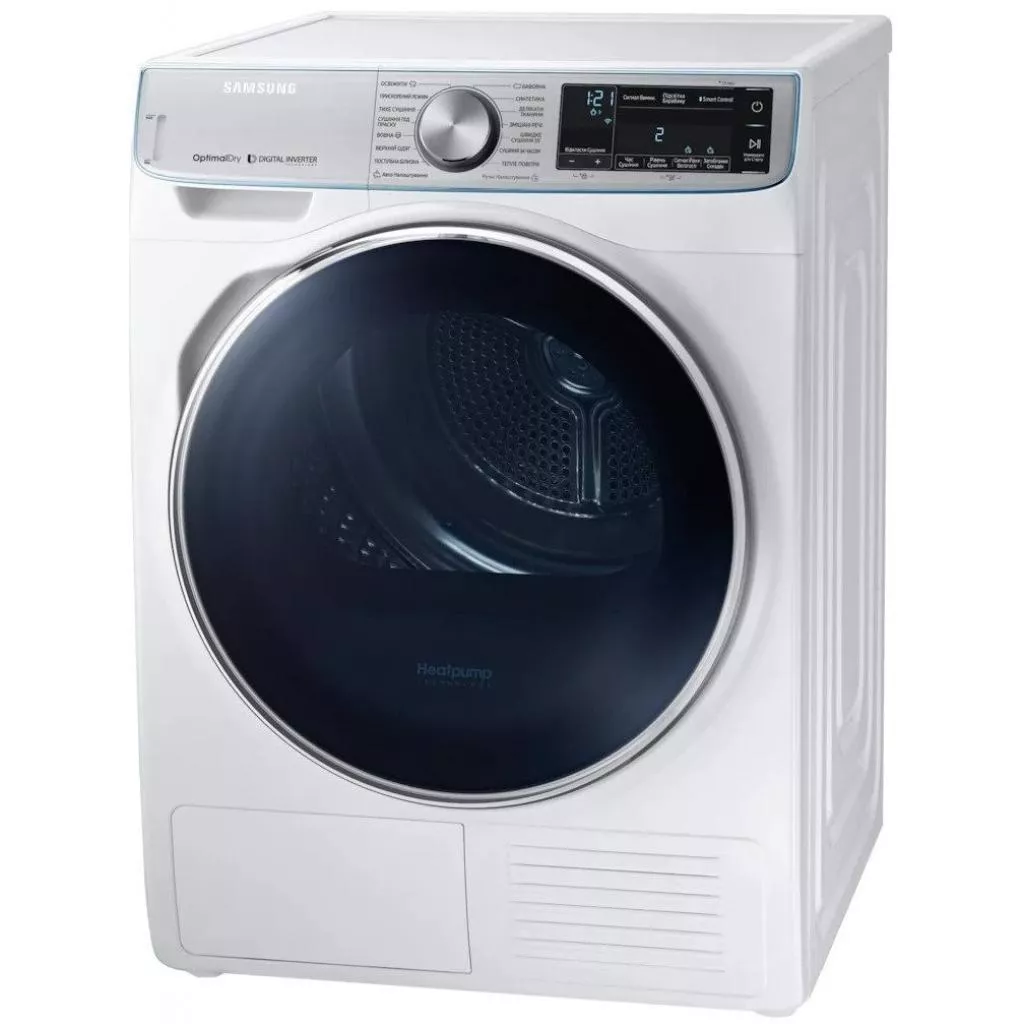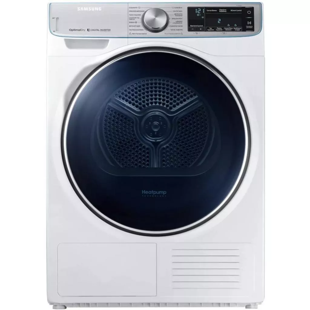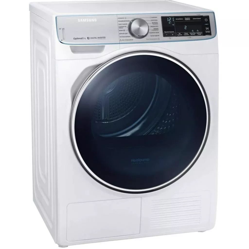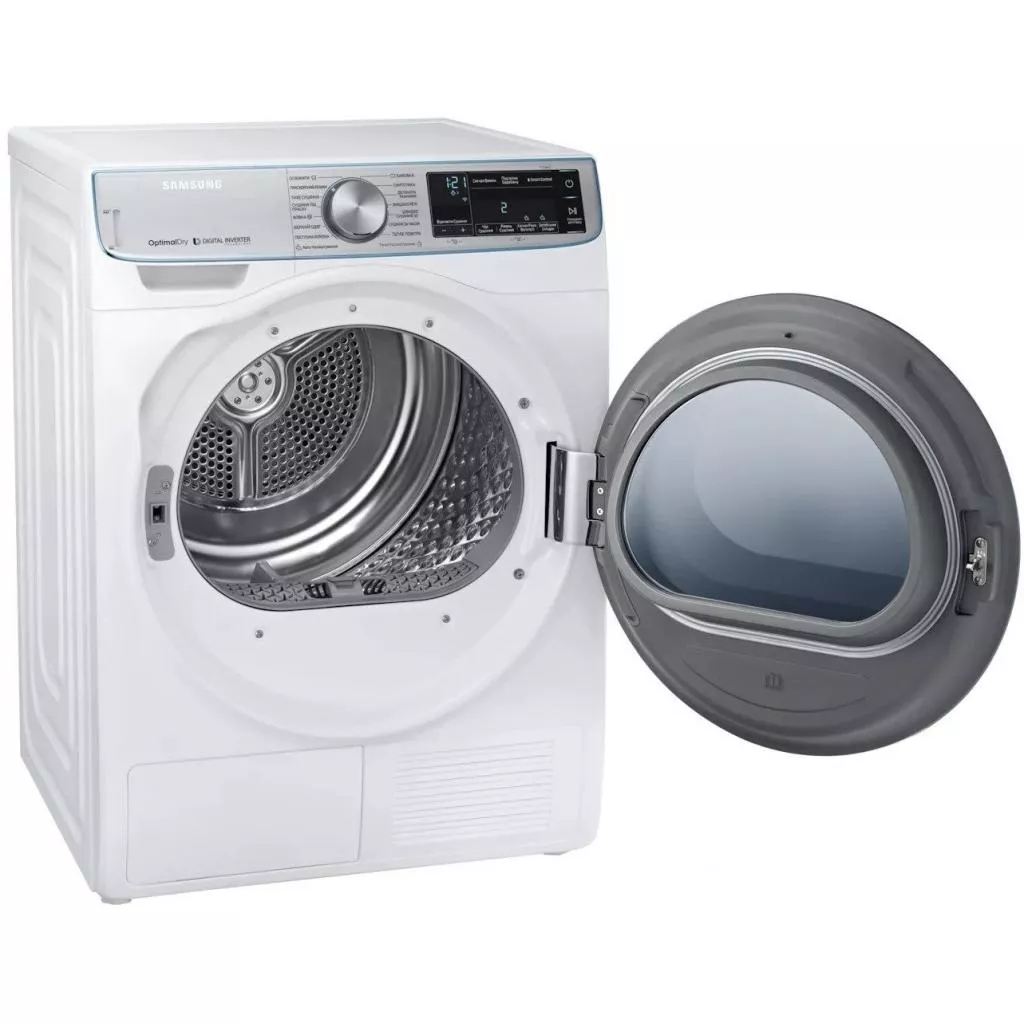 Сушильная машина Samsung DV90N8287AW/UA представляет собой устройство, относящееся к технике, минимально потребляющей энергию. Устройства класса А+++ – это самые энергоэффективные варианты бытовой техники. Данная сушильная машина работает на тепловом насосе, а для источника энергии использует хладагент, поэтому затраты на электричество в обслуживании минимальны.