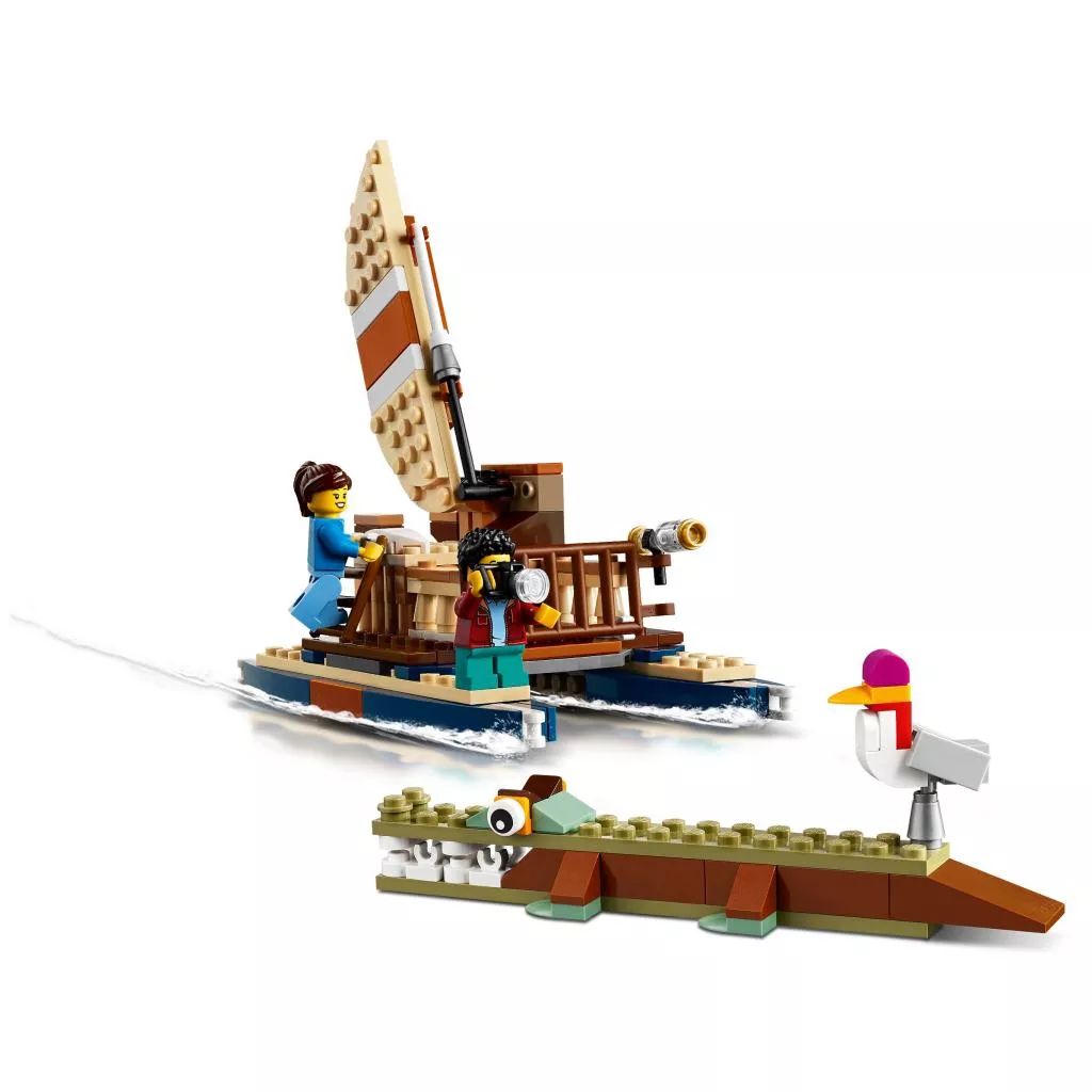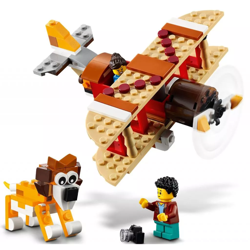 Набор дает возможность создать 3 модели с одних и тех самых деталей — дом на дереве с жирафом можно перестроить на биплан со львом или катамаран с крокодилом. Наблюдайте за поведением диких животных на суше, с неба или на воде.