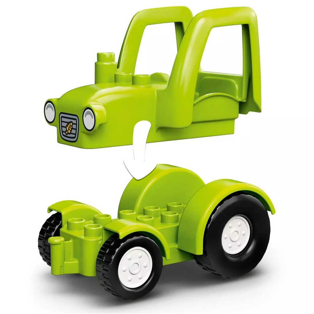 Ферма LEGO DUPLO полна возможностей для веселого обучения в игре. Здесь есть фермерские здания, трактор, и животные, за которыми надо ухаживать. Когда день подходит к концу, животных можно уложить спать — завтра будет новый день и новые игры!