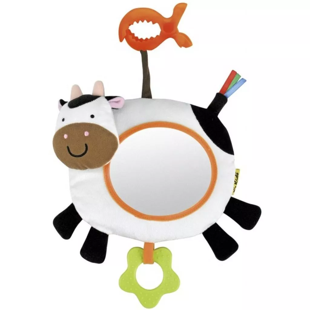 Подвеска на пристибци в виде коровки, имеет зеркало и прорезыватель. Рекомендуемый возраст от 0 мясяц (от рождения). Материал: полиэстер, пластик. Размер: 19 x 17 см. Упаковка: картонная подложка.