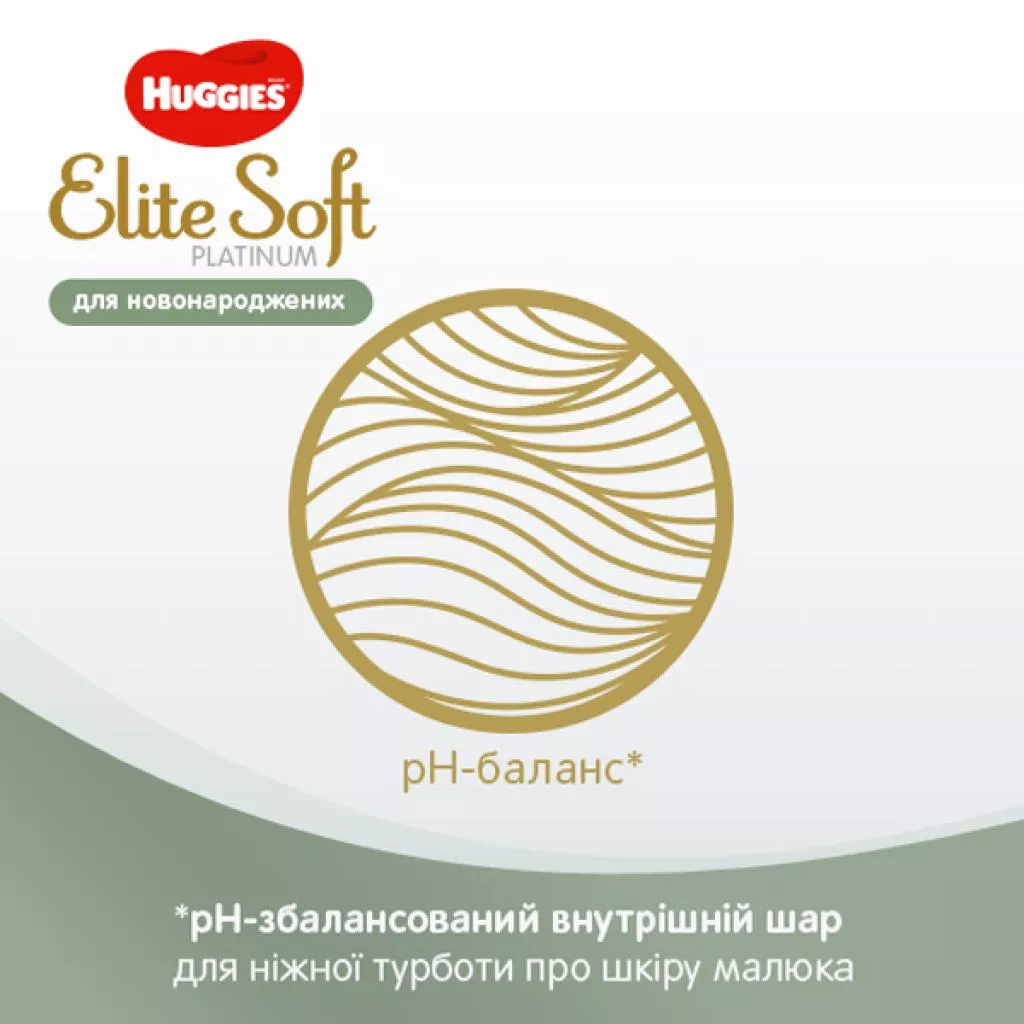 Huggies Elite Soft Platinum для новорожденных разработаны с использование (эксплуатации)м особо мягких и дышащих материалов, что способствует особому комфорту коже малыша. А благодаря ультратонкому (менее 3 мм) впитывающему слою и PH сбалансированному внутреннему слою Huggies Elite Soft Platinum для новорожденных обеспечивают по-настоящему непревзойденную заботу о коже вашего крохи.