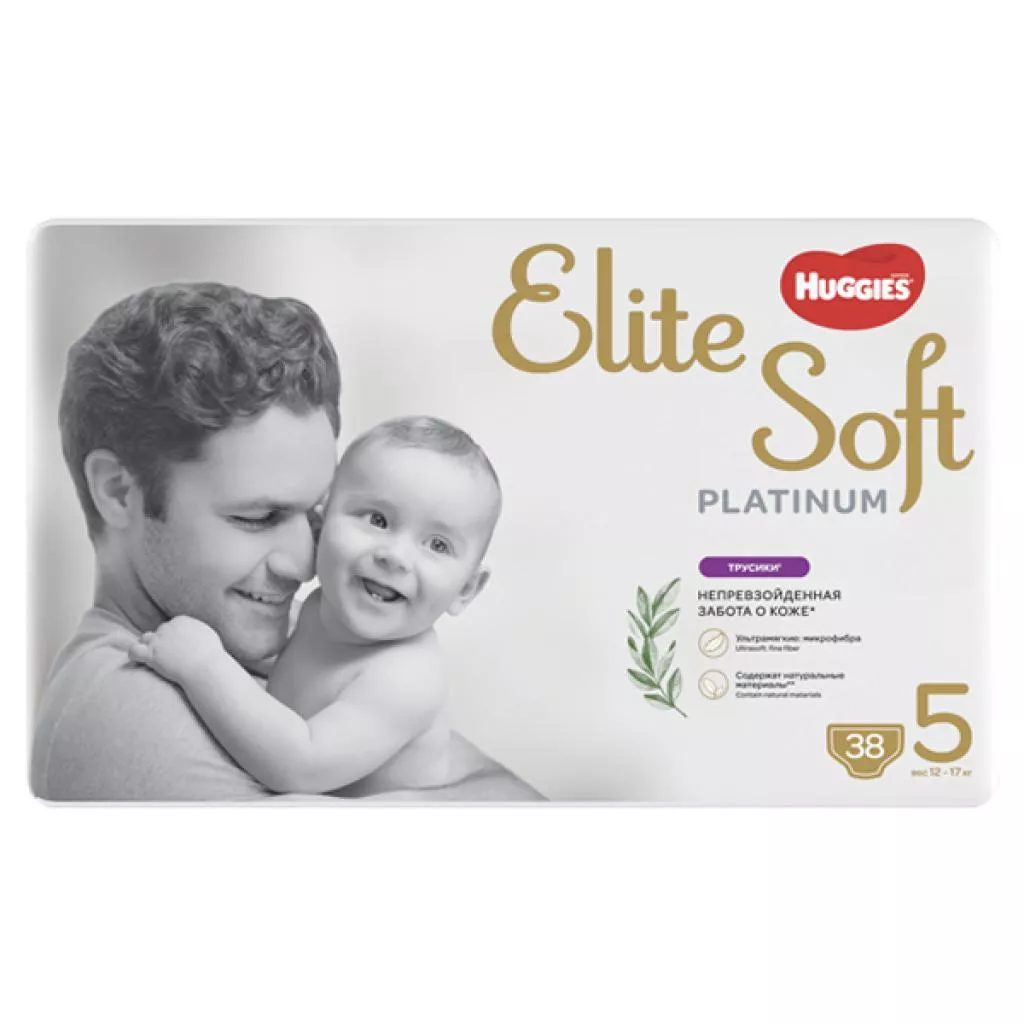 Huggies Elite Soft Platinum разработаны с использование (эксплуатации)м особо мягких и дышащих материалов, что способствует особому комфорту коже малыша. А благодаря ультратонкому (менее 3 мм) впитывающему слою и PH сбалансированному внутреннему слою Huggies Elite Soft Platinum обеспечивают по-настоящему непревзойденную заботу о коже вашего крохи.