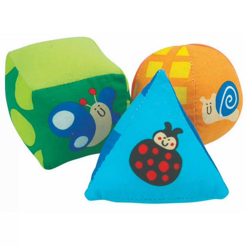 : Смешайте все кубики из ткани и пластика. Затем попросите ребенка классифицировать их по форме.