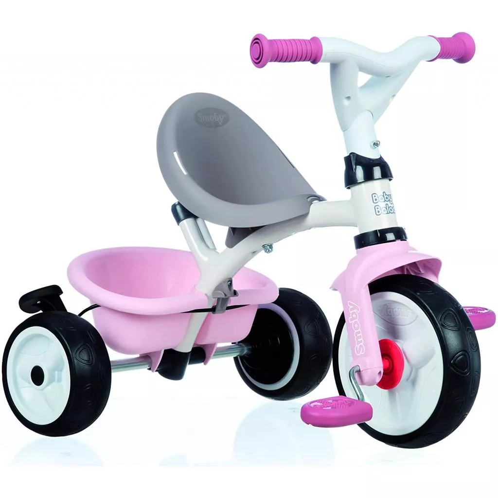 Современный трехколесный велосипед Smoby с бесшумными колесами имеет прочную металлическую раму, руль с сигналом и расширенное сиденья, регулируемые по высоте, подставки для ног и откидной багажник. Поворот руля ограничен 30 градусами для безопасного прохождения поворотов, есть возможность блокировки колес и руля. Велосипед оснащен и укомплектован защитным ободком по периметру и ремнем безопасности. Имеет съемную ручку для управления велосипедом взрослыми, которая отсоединяется, когда ребенок начинает управлять самостоятельно.
