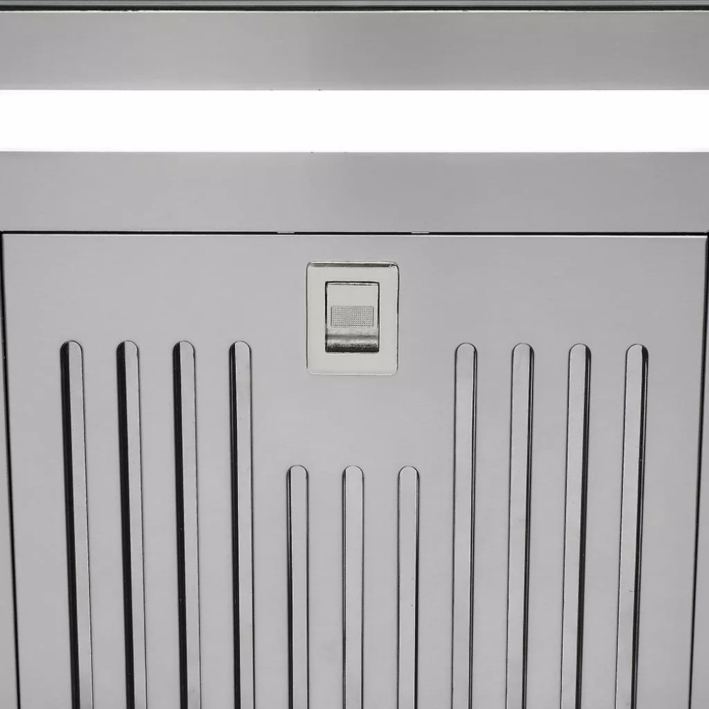 Вытяжка оснащен и укомплектована жировыми фильтрами Baffle, которые расположены на нижней части корпуса вытяжки, непосредственно над варочной поверхностью. Как и вся конструкция вытяжки Baffle фильтры, изготовленные из нержавеющей стали, работают, заставляя жирный насыщенный воздух быстро и неоднократно менять направление, когда он поднимается через фильтр, капли жира конденсируются в металлические лопасти, а затем сливаются в лоток фильтра.