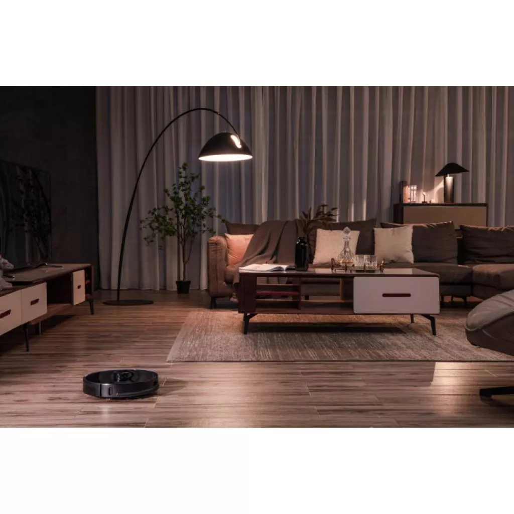 Ключевое преимущество новинки — автоматический сбор мусора с помощью базы-пылесборника. Пылесос подъезжает к ней, и автоматически сбрасывает мусор. Основные преимущества: возможность хранить в памяти несколько карт помещений, уборка 2 в 1 (сухая + влажная), автономная работа до 220 минут и совместимость с голосовыми ассистентами.