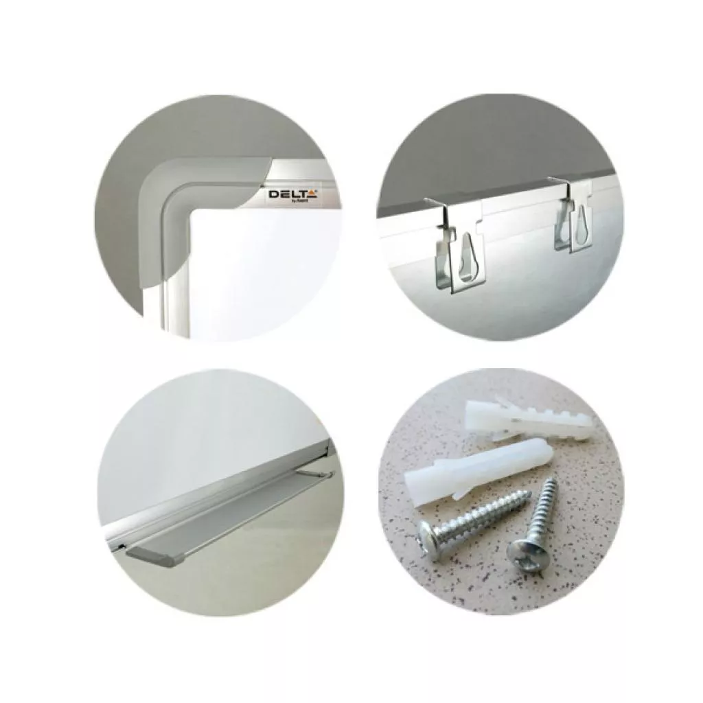 Лаковая магнитно-маркерная поверхность доски обеспечивает гладкое и легкое письмо сухостираемыми маркерами. Алюминиевая рамка с заокругленными уголками придает доске элегантный вид. Доска крепится в двух точках с помощью передвижных креплений. Возможно только горизонтальное крепление доски. В комплекте с доской также поставляется и полочка для маркеров. Обратная сторона доски укреплена оцинкованным стальным листом во избежание деформации рамки и поверхности для письма. Доска упакована в индивидуальную упаковку из плотного картона.Канцтовары ТМ Delta by Axent – это офисные товары высокого качества, воплотившие в себе европейскую надежность, точность, удобство и красоту. Канцелярия ТМ Delta by Axent – это маркер вашего индивидуального стиля, который расскажет о вас как о профессионале и личности, подчеркнет ваши важные особенности и характер.