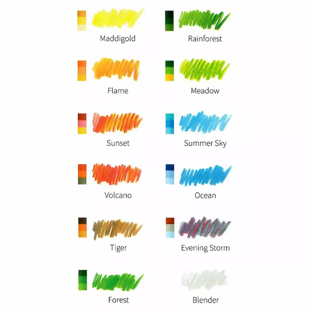 Оригинальные карандаши с многоцветным грифелем – карандаш рисует и пишет тремя цветами одновременно, образуя единую многоцветную линию. Ее цвет меняется при малейшем изменении наклона карандаша. Уникальная технология изготовления грифеля дает возможность плавно перейти от одного оттенка к другому, создавая таким образом эффект 3D.