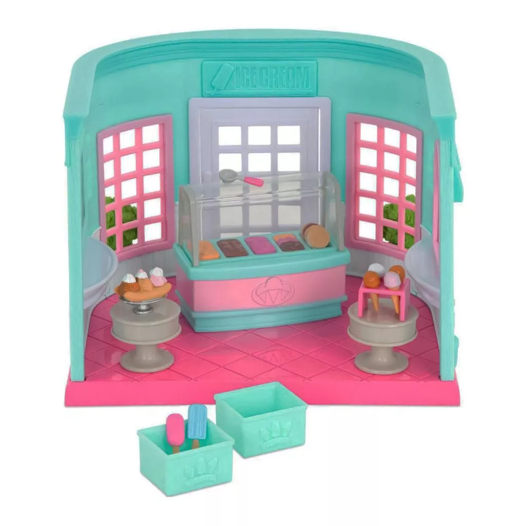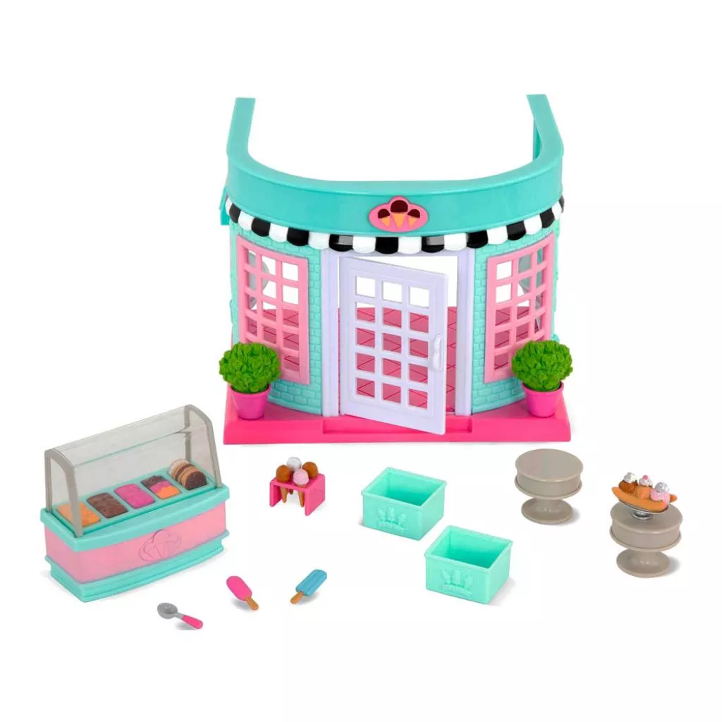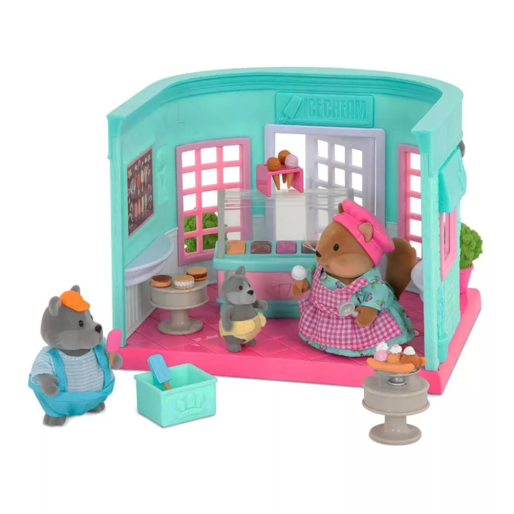 Все любят мороженое в жаркий день. Один шарик или два? "Павильон с мороженым" Li'l Woodzeez великолепно подойдёт для нового игрового сюжета! Маленькое кафе с красочной витриной. Ассортимент мороженого огромный: шоколадное, клубничное, ванильное, рожок. Большое количество игрушечных продуктов дополнят общую картину и сделают игру наиболее реалистичной и захватывающей.