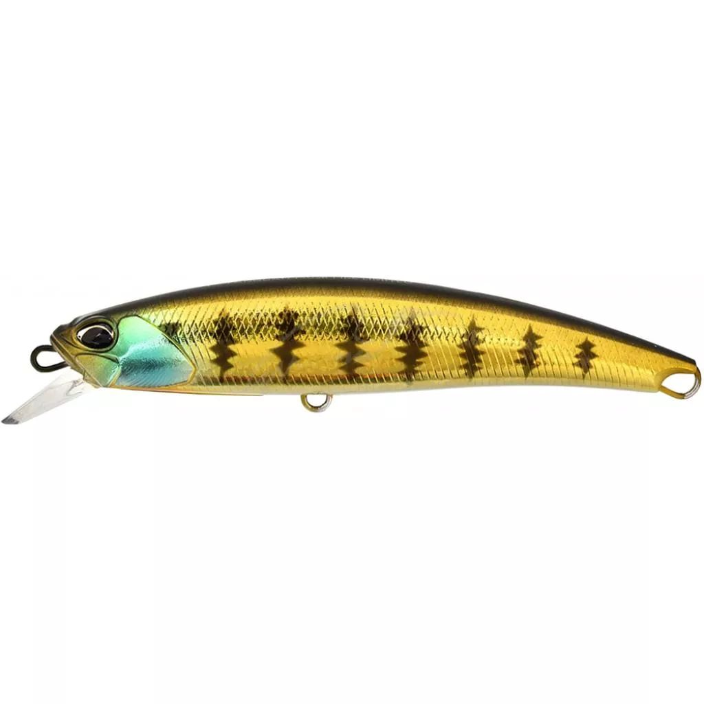 Fangbait представляет собой серию крупных воблеров типа минноу, разработанных самим Kazuhiro Uyama для ловли трофейных экземпляров рыб! В качестве новаторской идеи для серии (модельного ряда) Fangbait применена уникальная система крепления, представляющая собой толстую проволоку диаметром 1.2mm, проходящей через все тело приманки, которая обеспечивает в сочетании с утолщенными стенками из крепкого пластика (на 20% толще, чем у стандартных моделей) невероятную прочность воблера.
