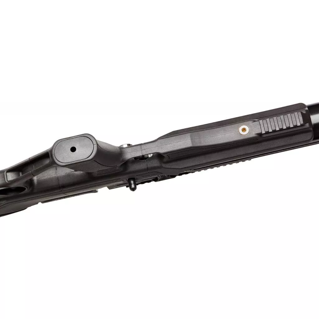 Модель оснащен и укомплектована двухпозиционным предохранителем флажкового типа. В качестве резервуара высокого давления используется колба из алюминиевого сплава. Резервуар расположен параллельно стволу. Наличие биатлонного взвода дает возможность перезаряжать оружие с меньшим усилием и без лишнего шума. Открытых прицельных приспособлений нет, но имеется планка Вивер для возможности установить оптический прицел.