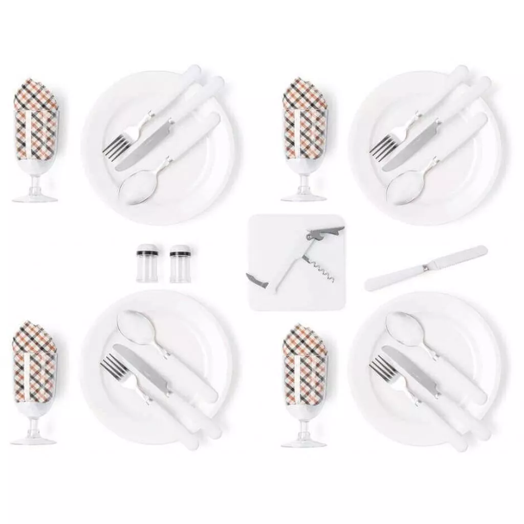 | Комплектация | 2 шт, 4 шт, бокал, вилка, досточка, емкость для соли и перца, ложка, нож, нож-пилочка, открывашка, салфетка, тарелка, штопор |