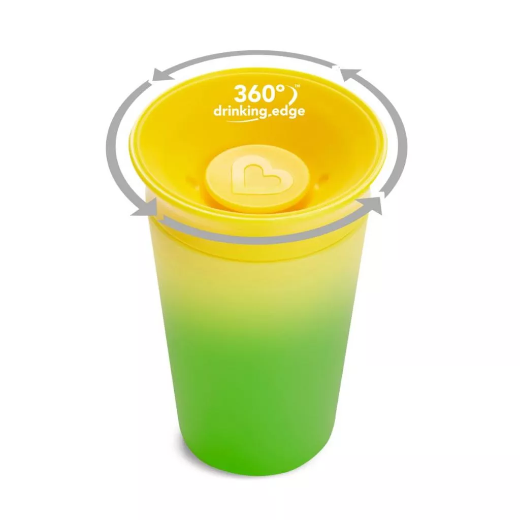 Чашка-непроливайка Munchkin Miracle 360° Color с силиконовой накладной, поможет Вашему малышу научиться пить самостоятельно. Форма чашки без "носика" рекомендована стоматологами как абсолютно безопасная для зубов и способствующая развитию мышц рта.