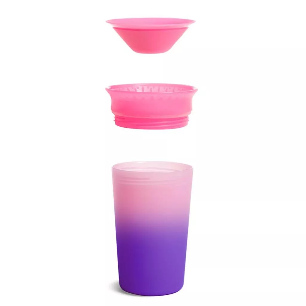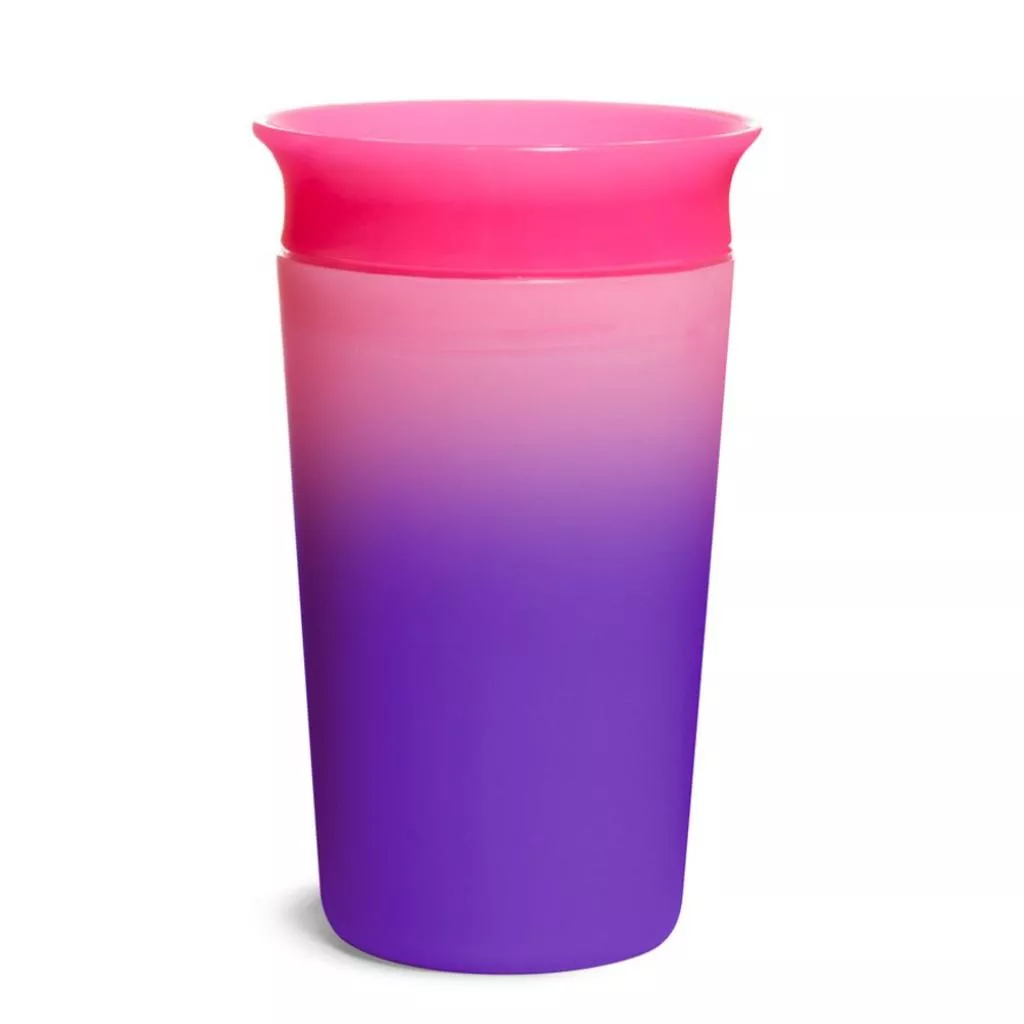 Чашка-непроливайка Munchkin Miracle 360° Color с силиконовой накладной, поможет Вашему малышу научиться пить самостоятельно. Форма чашки без "носика" рекомендована стоматологами как абсолютно безопасная для зубов и способствующая развитию мышц рта.