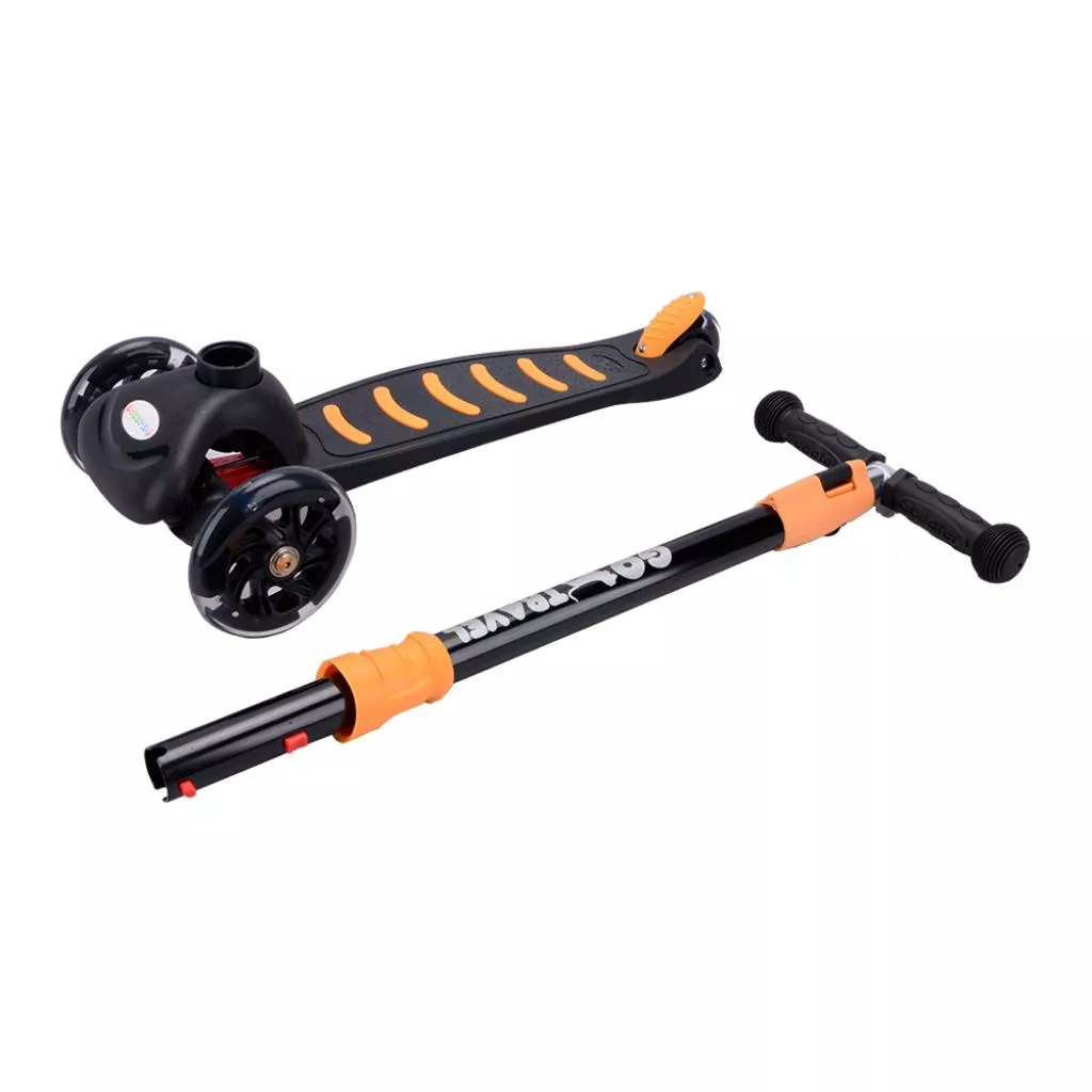 Cамокат GO Travel устойчив и надежен, благодаря трем колесам (два спереди, одно сзади). Ребенок быстро и без страха освоит навыки катания, балансировки, координации движений. Легко управляется.