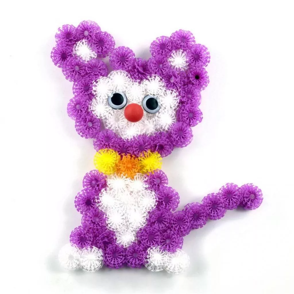 Набор состоит из: ярких разноцветных шариков-репейников и дополнительных аксессуаров (глазки, рожки, и т.д.). Шарики легко липнут друг к другу, образуя фигуры любых форм. Аксессуары позволят сделать любую фигуру более реалистичной и придать ей неповторимую индивидуальность.
