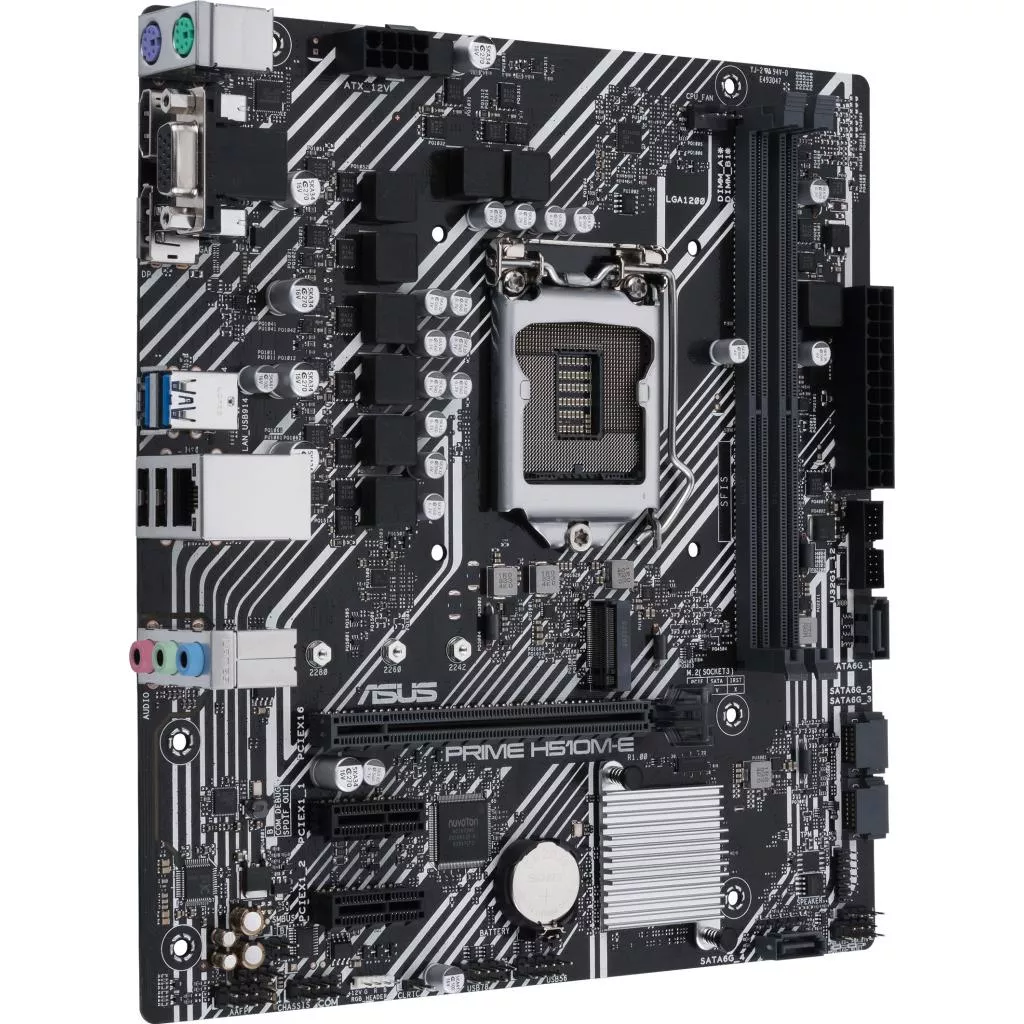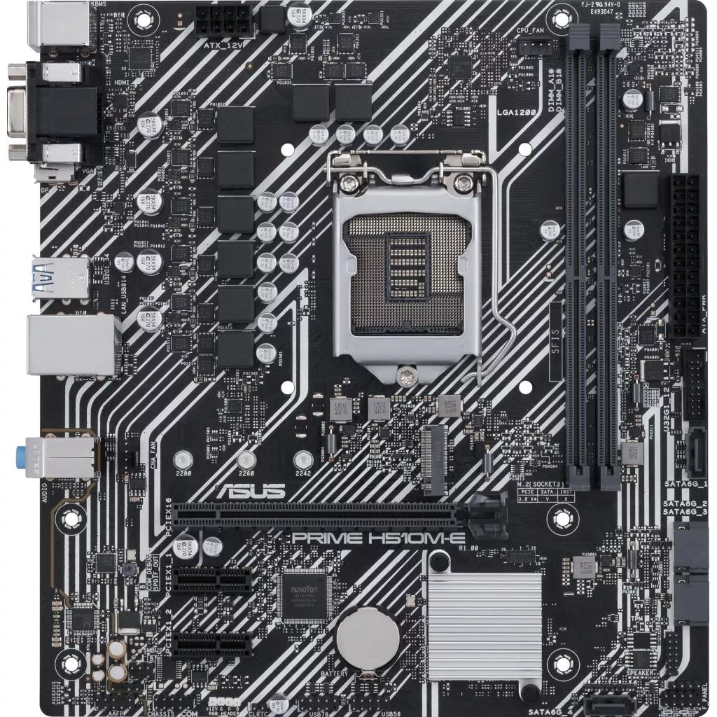 Asus Prime H510M-E - материнская плата с чипсетом Intel H510. Оснащена процессорным разъемом LGA 1200, выполнена в форм-факторе micro-ATX, а потому оптимизирована для компактных систем.