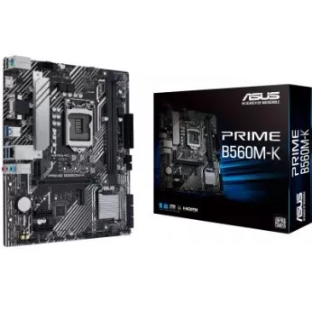 Asus Prime B560M-K - материнская плата с чипсетом Intel B560. Оснащена процессорным разъемом LGA 1200, выполнена в форм-факторе micro-ATX, а потому оптимизирована для компактных систем.
