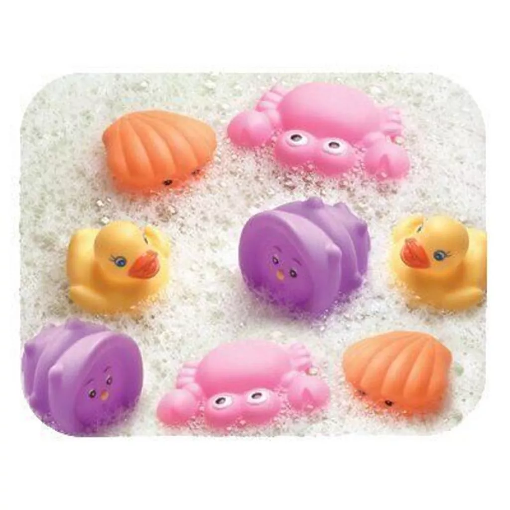Яркие, но мягкие и приятные цвета игрушек наверняка привлекут к себе внимание вашей крохи. Это целый набор игрушек-брызгалок от Playgro, который состоит из восьми забавных игрушек для времяпрепровождения в ванне – в нем имеются две уточки, два крабика, два моллюска и две ракушки, размер которых как раз будет удобен для маленьких детских ручек.